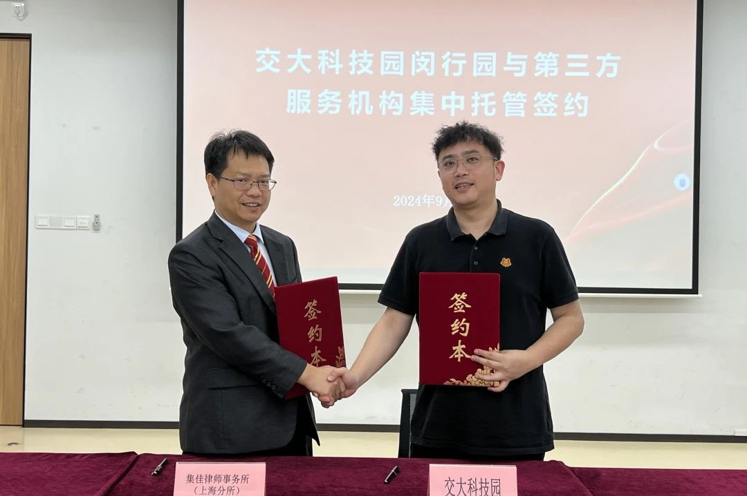 为助力企业科技创新和经济发展护航保障,提供高质量维权公益援助,会上举行了“上海市开发区协会维权援助工作站交大科技园闵行园工作室”揭牌仪式,交大科技园闵行园与懂球帝官网上海分所进行了托管签约。